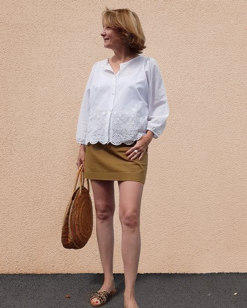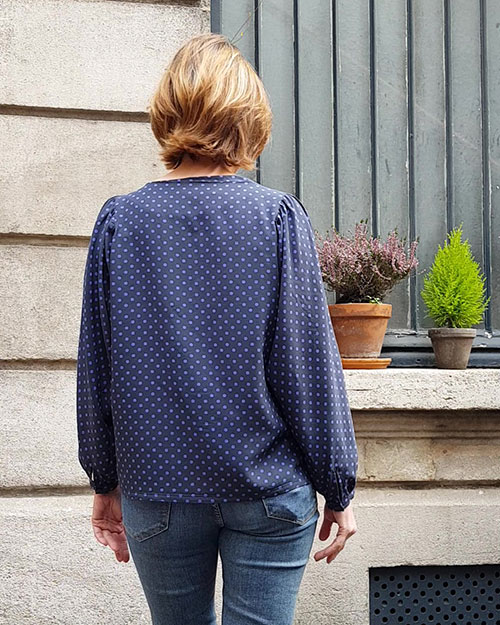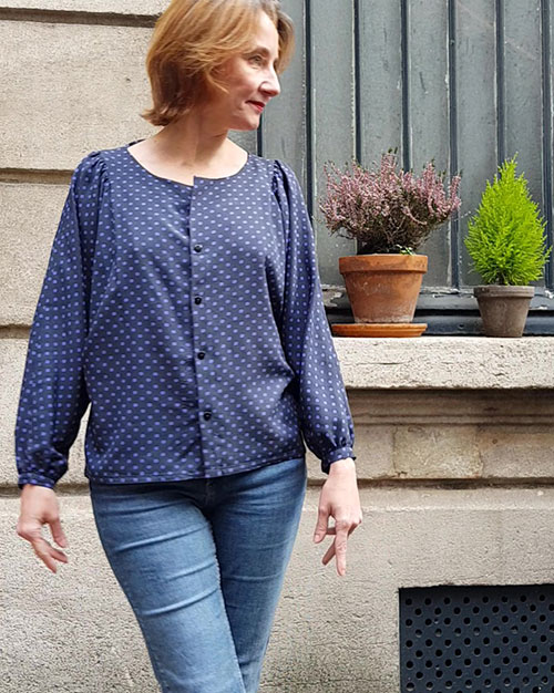 La réalisation des fronces constitue d’ailleurs la principale difficulté de la blouse qui reste néanmoins un modèle simple qui se coud rapidement.