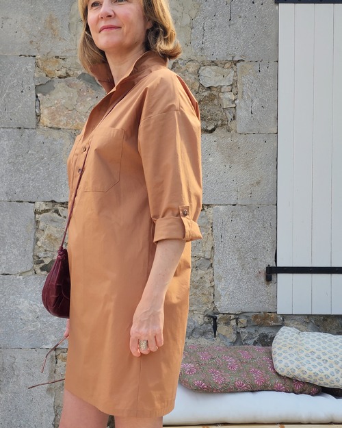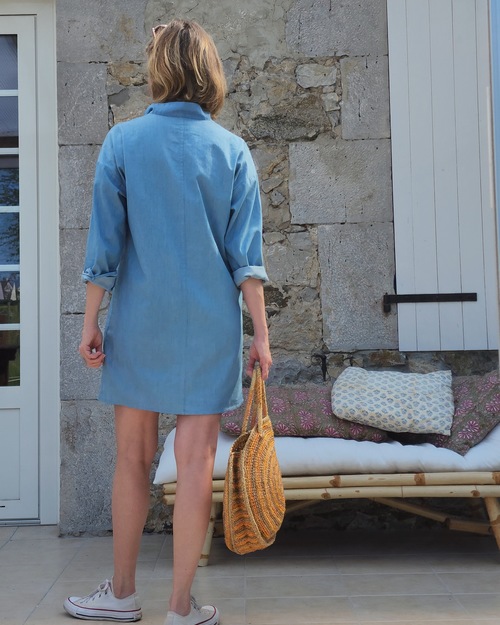 Forme liquette ou droite sur le bas, une couture rabattue sur le dos, des poches prises dans la couture avec surpiqûres sur le devant et/ou des poches plaquées poitrine, ce sont plein de jolis détails qui confèrent à la robe Joan un style à la fois simple et élégant.